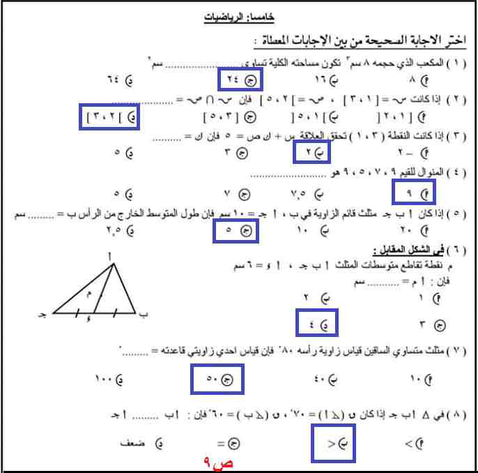 اختبار شهر أكتوبر لمادة العلوم تانية اعدادي