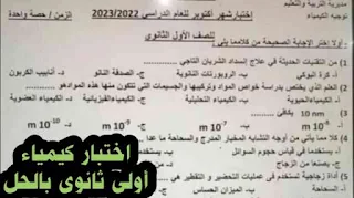 اختبار شهر أكتوبر كيمياء اولى ثانوي